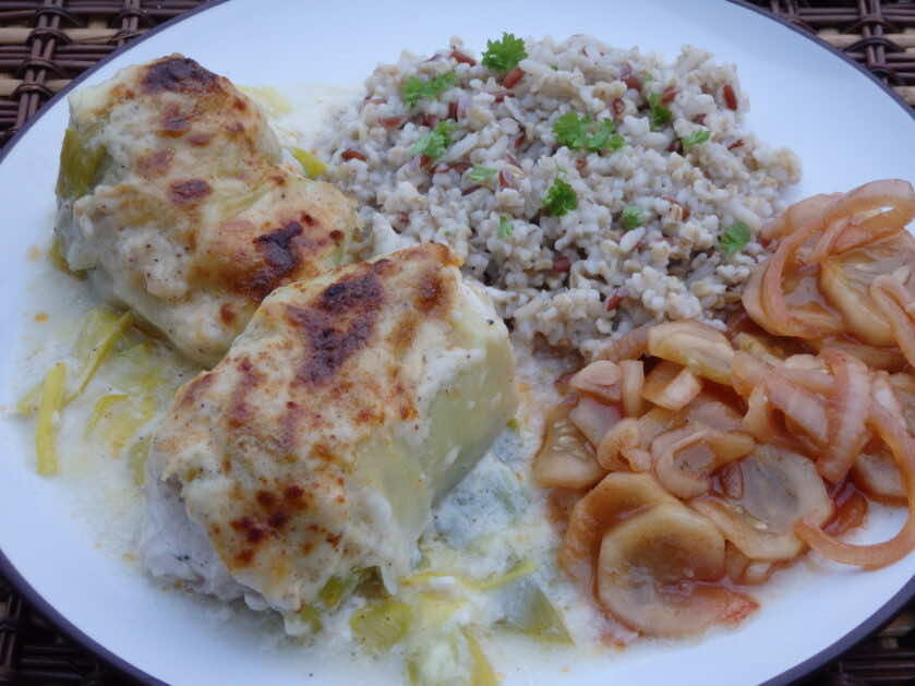 Polecam pyszny pomysł na obiad z udziałem pora. Przyrządziłam roladki z piersi kurczaka nadziewane camembertem i owinięte paskami sparzonego pora….