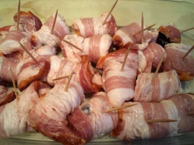 Składniki 0,5 kg boczku wędzonego 15-20 śliwek suszonych