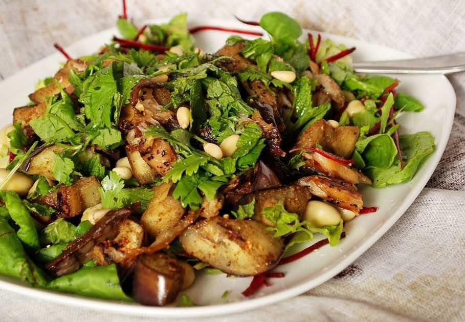 Składniki (2 porcje; lub jedna na wielki głód;) 2-3 garście ulubionej mieszanki sałat 3 łyżki bobu (użyłam konserwowego) 1 bakłażan,…