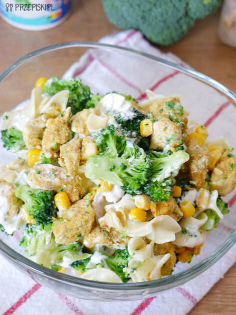 Makaronowa sałatka z brokułem i kurczakiem
