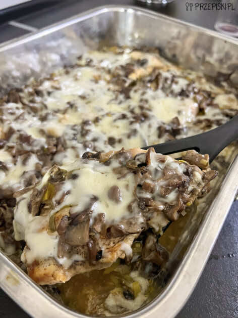 Kurczak zapiekany z grzybami i porem