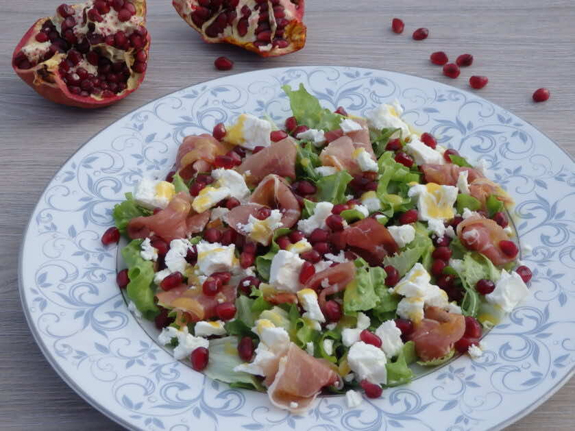 Ostatnio zajadam granaty więc stworzyłam też kompozycję sałatkową z tymi małymi pesteczkami. Jako baza – tradycyjnie porwana sałata a dodatki…