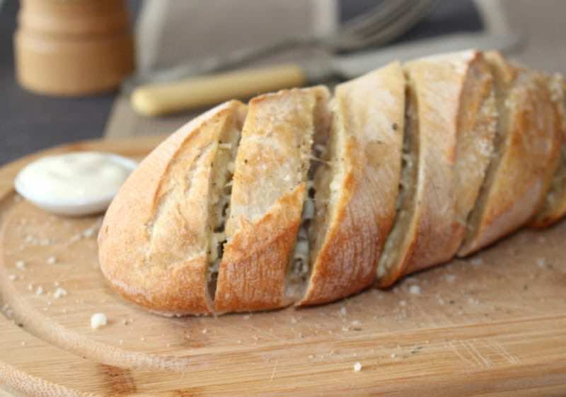 Palucha nakroić ukośnie w kilku miejscach. Posmarować wewnątrz obficie przygotowanym sosem. Piec w piekarniku około 10 minut.