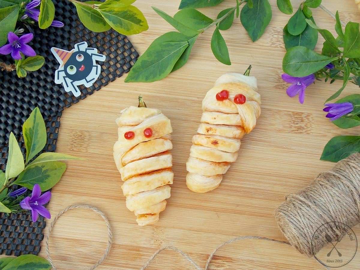 Jedyny taki dzień w roku, gdzie straszne potwory, przerażające pająki i inne robale, wiedźmy, kościotrupy czy czaszki możemy spotkać w najmniej spodziewanych miejscach. U nas może jeszcze nie tak hucznie obchodzony, ale zyskujący na popularności. Halloween to straszny dzień wymagający odpowiedniej oprawy… Na ten upiorny wieczór przygotowałam mumie z malutkich papryczek, na które z pewnością skuszą się nie tylko najmłodsi.
