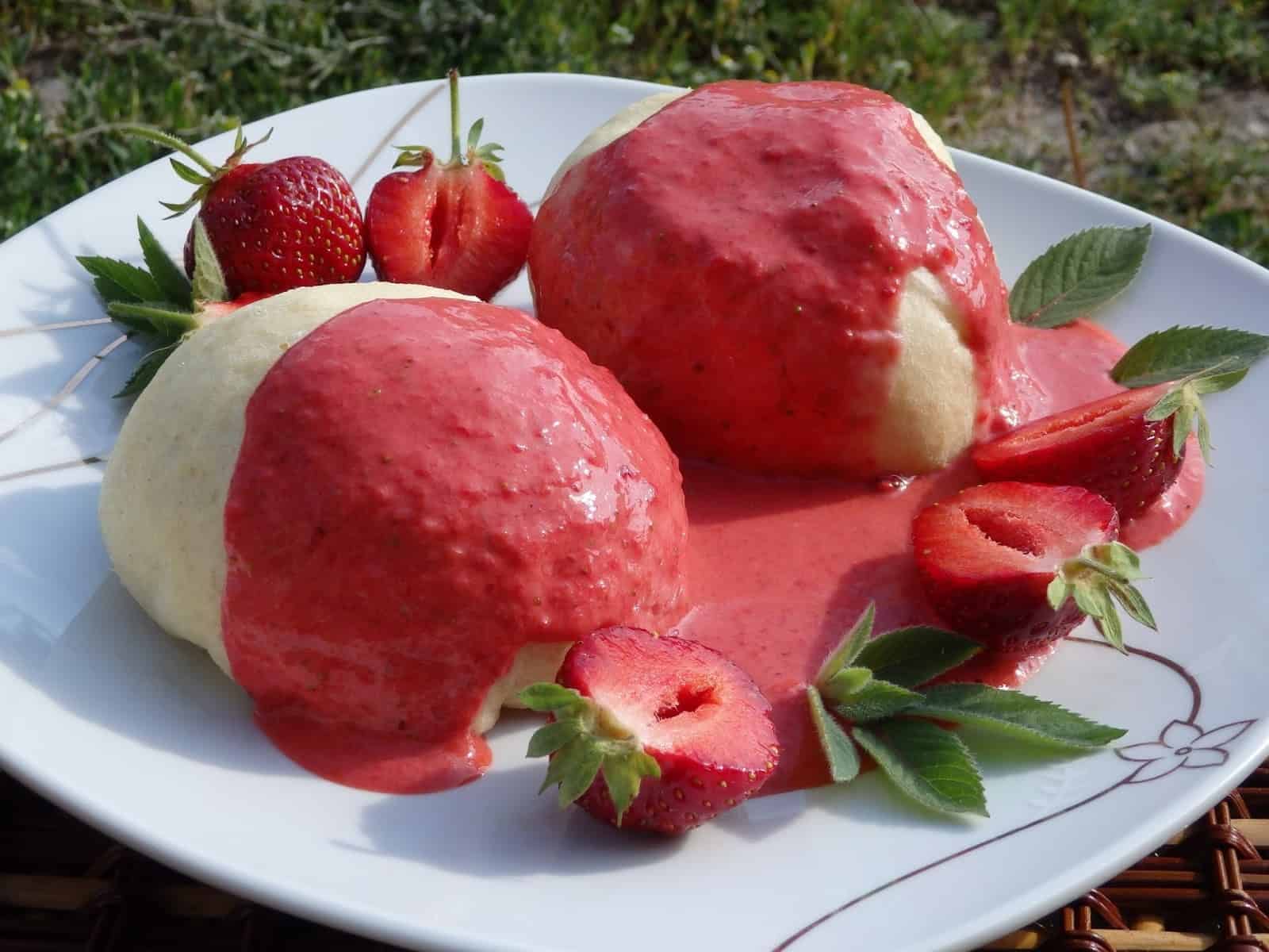 Pyszne danie z mojego dzieciństwa. Mama robiła nam takie bułeczki na parze z różnymi owocami, największym powodzeniem cieszyły się te z truskawkami. Moja córeczka również je uwielbia.