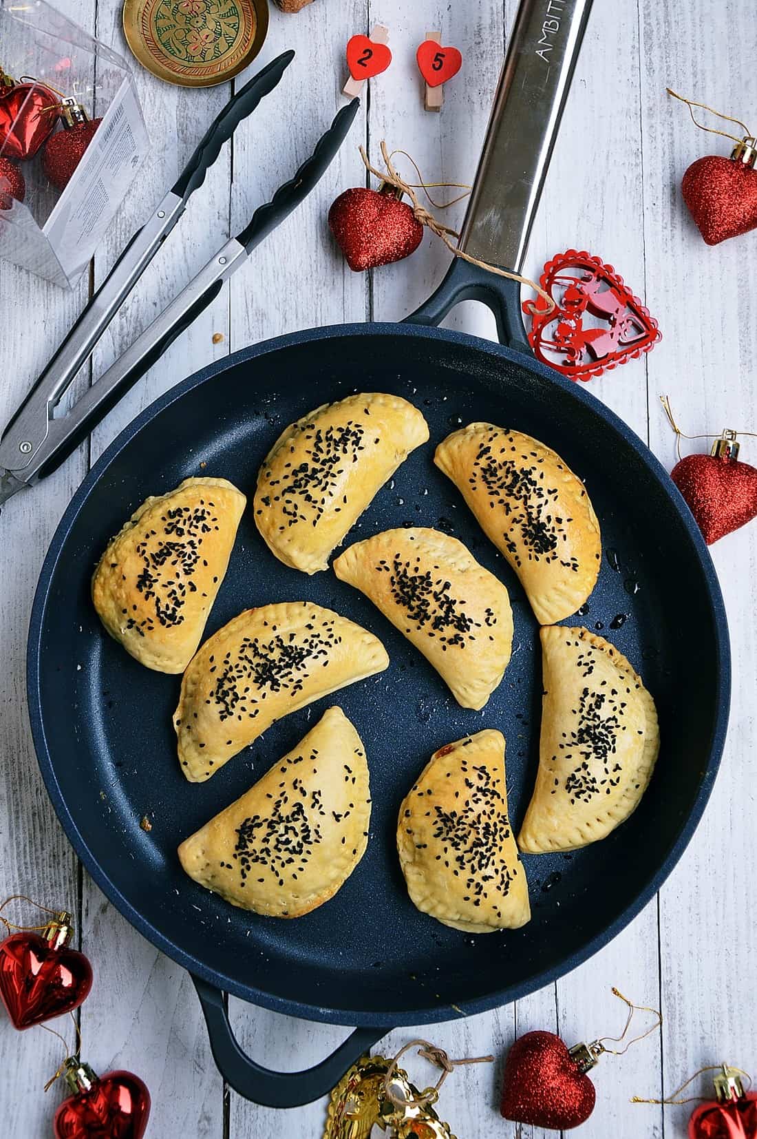 Pieczone piergoi z pieczarkami i oliwkami