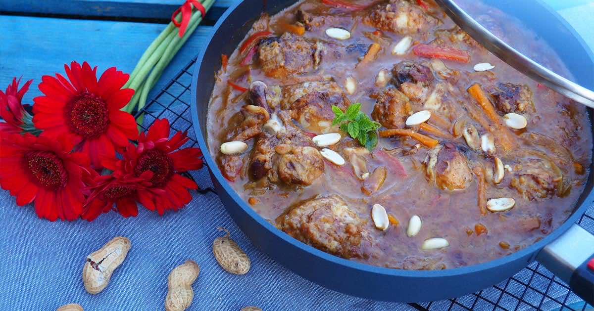 Danie inspirowane kuchnia azjatycką… pieczone podudzia z kurczaka w aksamitnym sosie orzeszkowym, przygotowanym na bazie mleka kokosowego oraz pasty orzechowej.