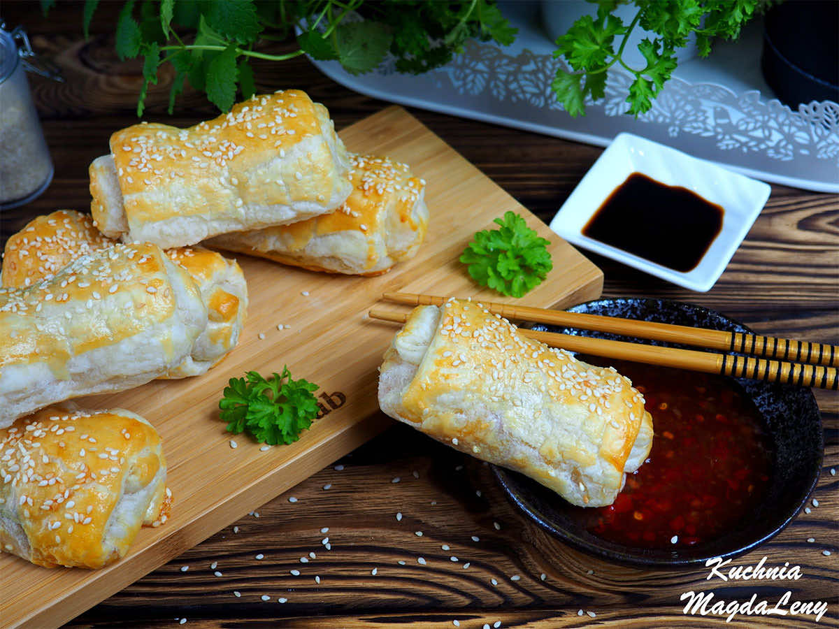 Wegetariańskie przekąski z ciasta francuskiego a’la sajgonki :)
