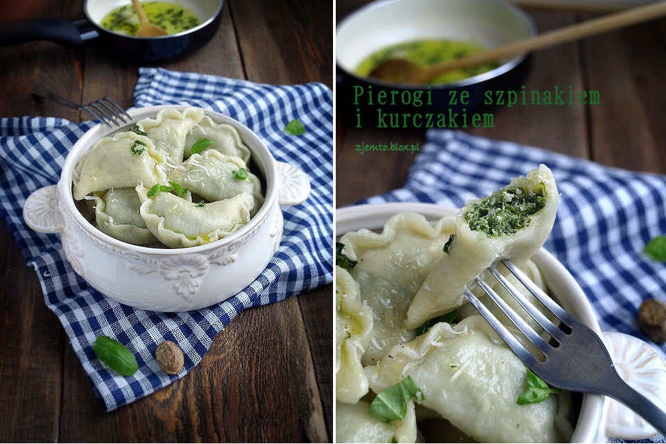 Pierogi z zielonym wnętrzem podane z masłem ziołowym!
