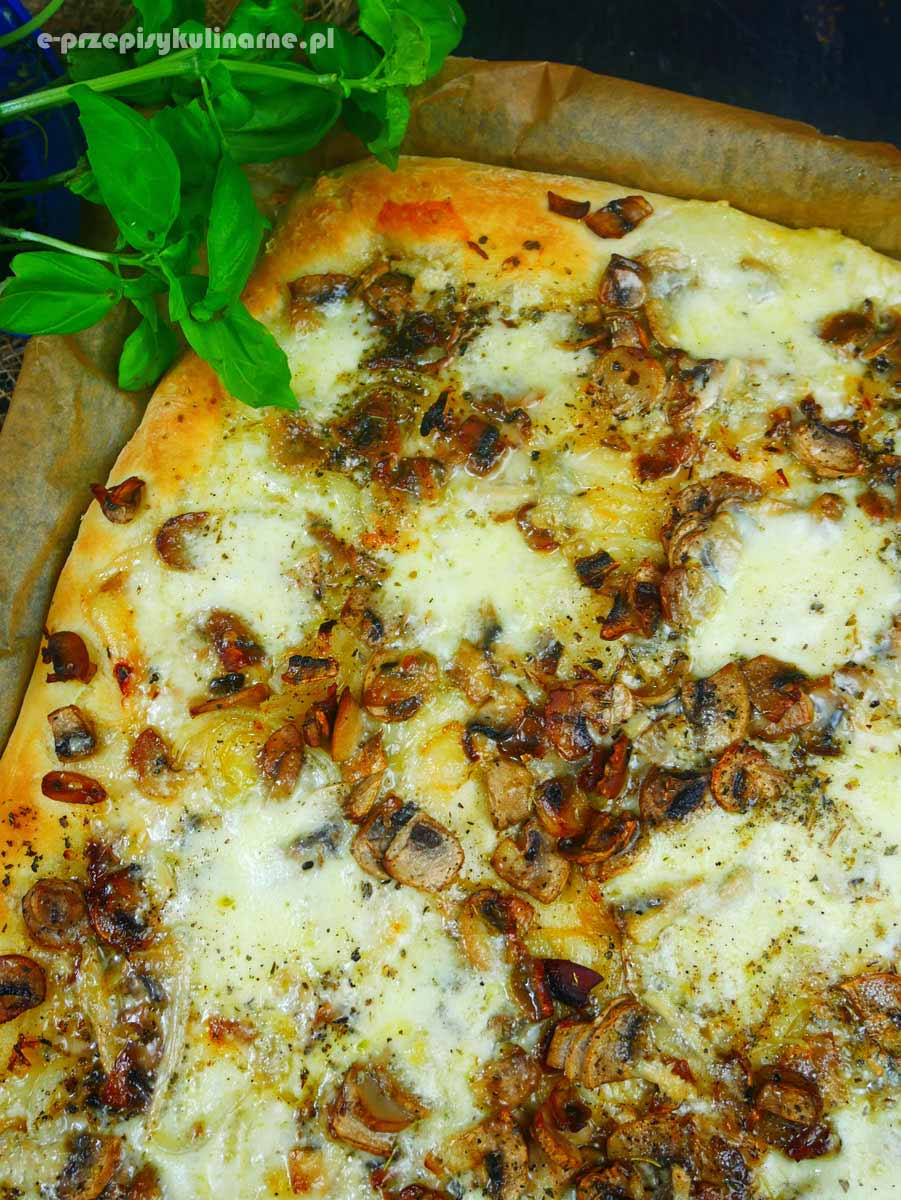 Pizza bianca z pieczarkami i mozzarellą bez sosu pomidorowego to kolejny pyszny, lecz nieklasyczny pomysł na pizzę.