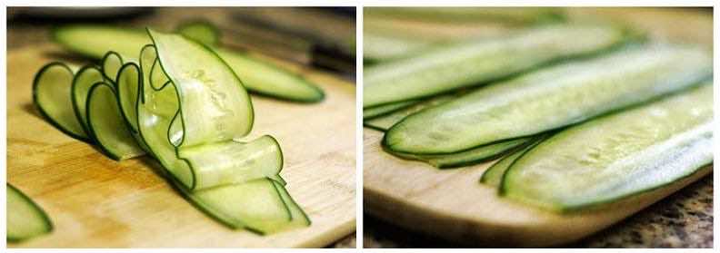 Ogórek myjemy, a następnie kroimy w cienkie plasterki za pomocą obieraczki do warzyw. Następnie na desce układamy dwa plasterki, a następnie smarujemy je pastą wykonaną z rozgniecionego serka almette, jajka na twardo i odrobiny majonezu z pieprzem i solą. Następnie zawijamy. Roladki możemy jeszcze udekorować odrobiną salsy :)