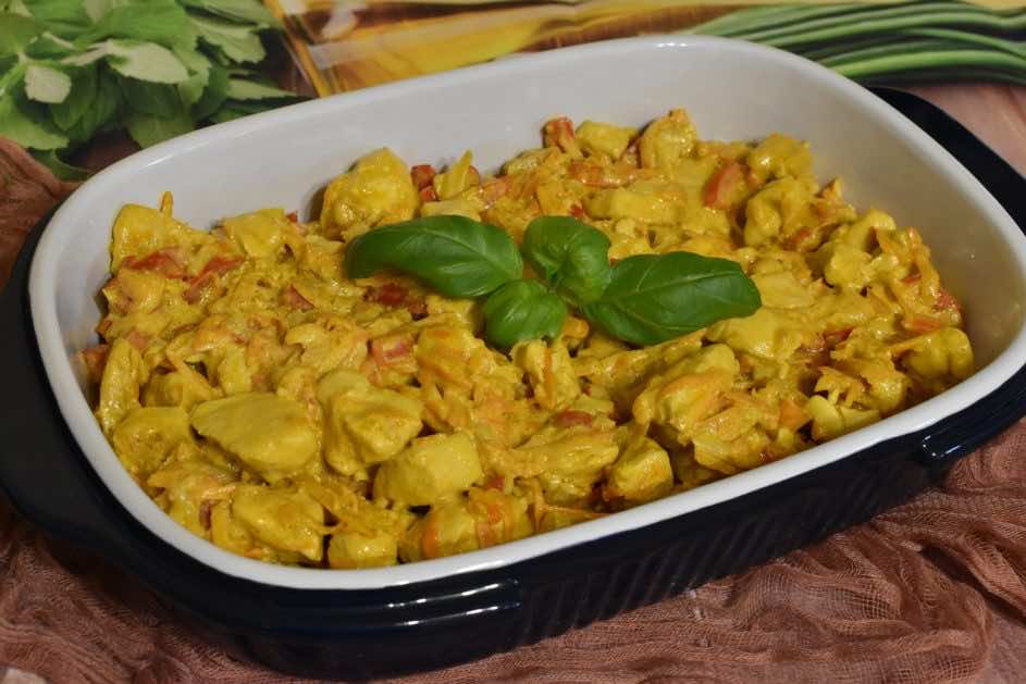Szybkie danie z soczystego mięsa z kurczaka w aromatyczną przyprawą. Danie najlepiej smakuje z ryżem.