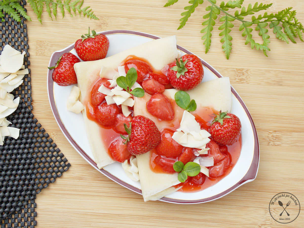 Przygotowanie jest dziecinnie proste. Wystarczy wszystkie składniki wrzucić do miski, a następnie wymieszać je ze sobą za pomocą miksera. Jeśli włożysz do ciasta łyżkę i wyjmiesz ją to ciasto powinno ładnie cieknąć, ale jednocześnie pozostać na ściankach łyżki. Jeśli jest zbyt gęste możesz dodać trochę wody gazowanej co dodatkowo sprawi, że naleśniki będą pulchniejsze.