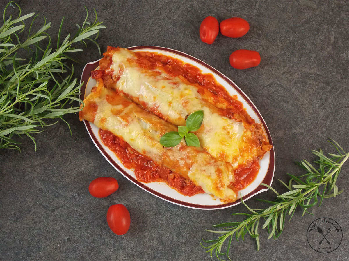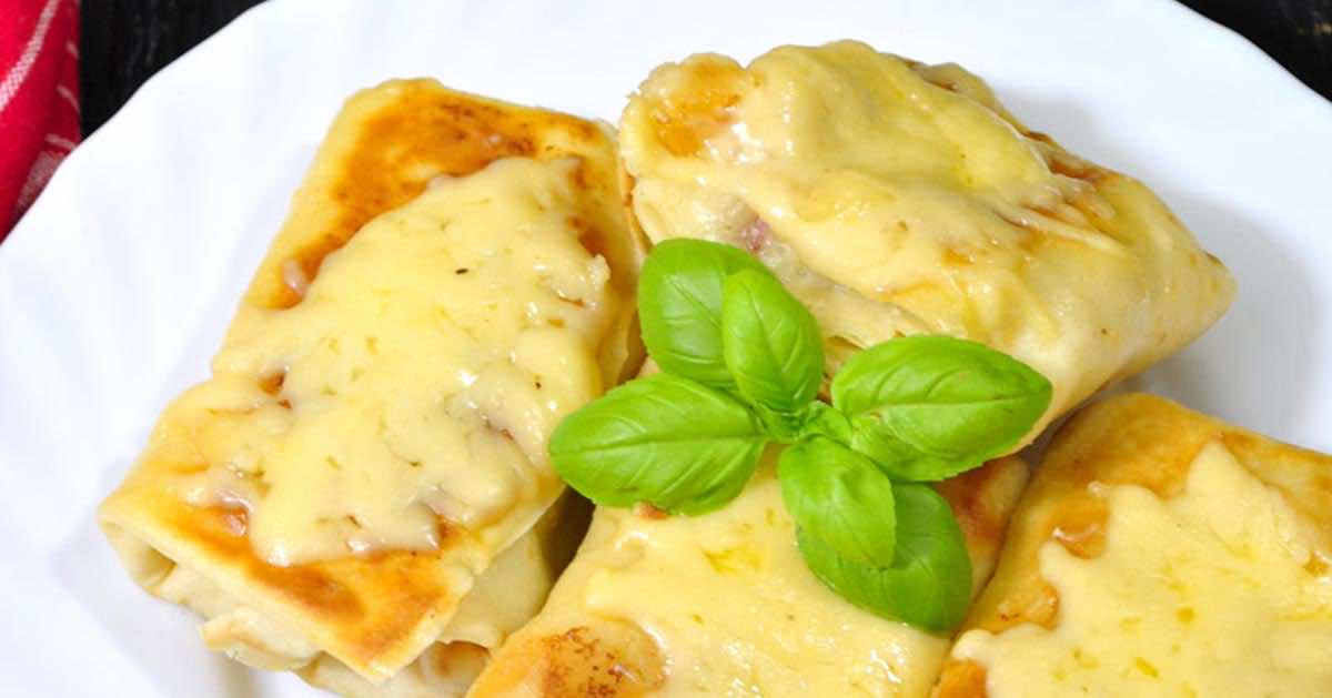 Naleśniki z szynką i serem pleśniowym zapiekane w piekarniku