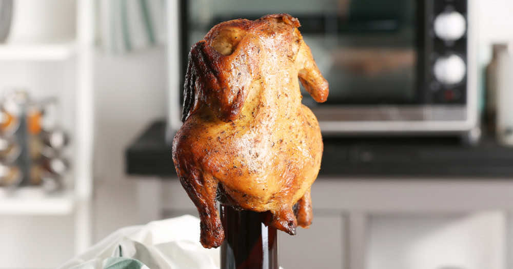 Podczas pieczenia kurczaka na butelce należy co jakiś czas do niego zerkać. Butelka oczywiście musi być otwarta. Dzięki temu co jakiś czas gorące piwo będzie się z niej wylewać i zwilżać mięso nadając mu kruchości, soczystości i aromatu. Jeśli jednak piwo z butelki nie będzie kipieć, wtedy wystarczy co 10-15 minut wrzucić do niego odrobinę soli. Od razu zacznie się pienić i wyciekać przez szyjkę butelki.