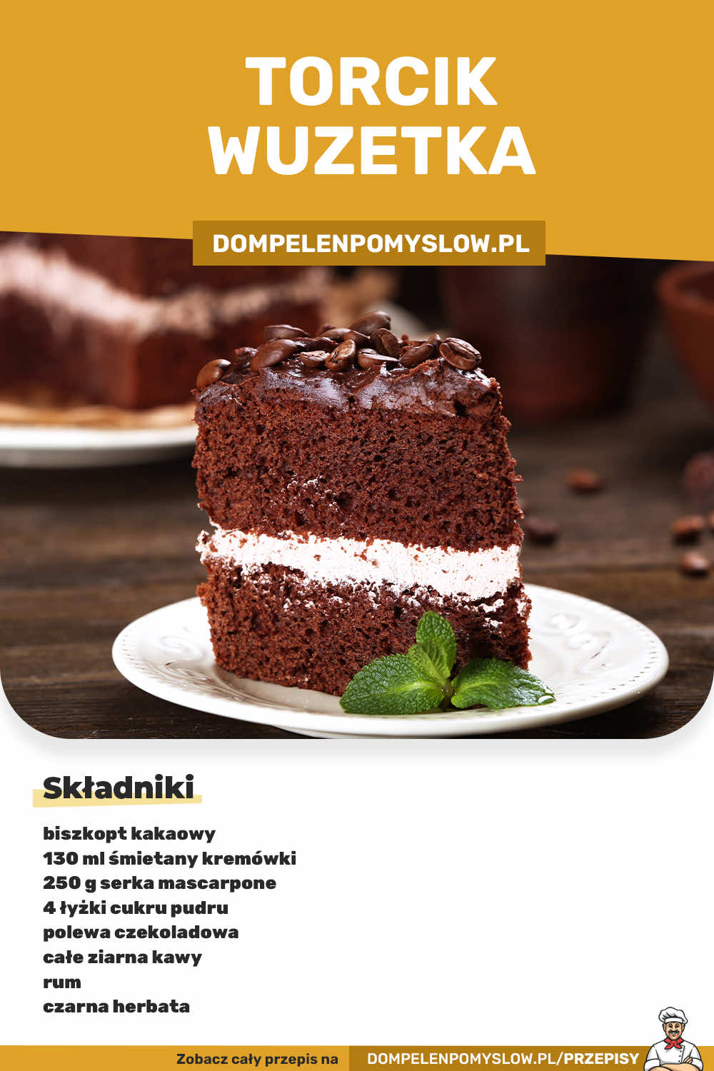 Przepis na torcik Wuzetka to doskonały deser na bazie kakaowych biszkoptów oraz serka mascarpone. Przygotowuje się je bardzo szybko i nie trzeba go piec. Jest bardzo dobry w smaku i z pewnością sprawdzi się Wam na wiele różnych okazji.