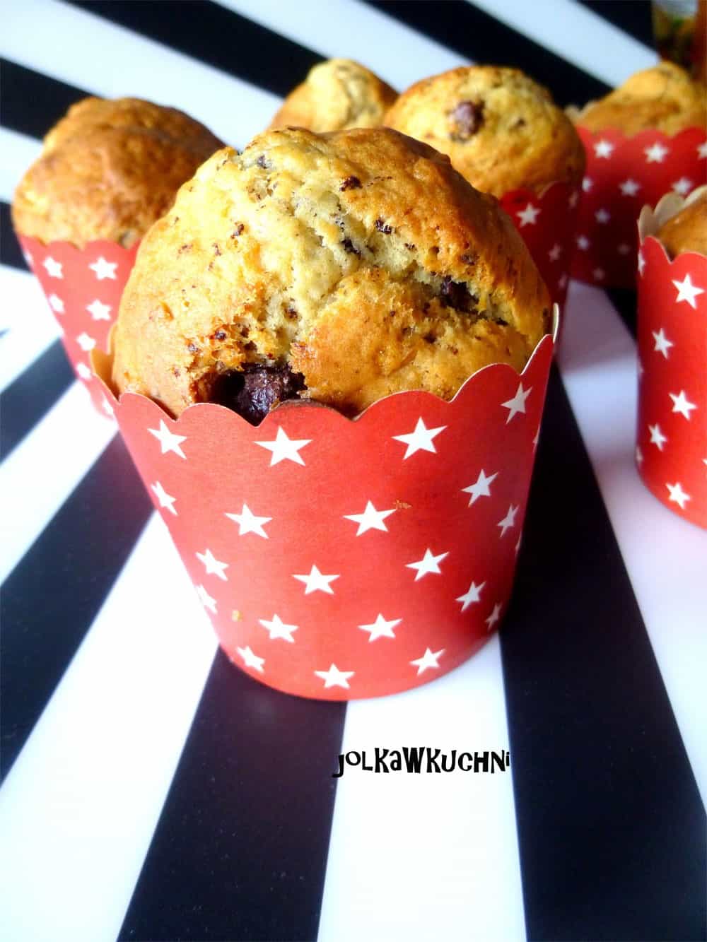 Babeczek u nas dawno nie było. Więc najwyższy czas jakieś zrobić. Padło na takie z kawałkami czekolady. Babeczki wyszły mega puszyste i bardzo smaczne. Bardzo szybko można je przygotować a składniki pewnie każdy z was ma w domu. Babeczki zrobiłam w dużych kubeczkach papierowych więc gdy użyjecie zwykłych foremek babeczek będzie pewnie połowę więcej ;)