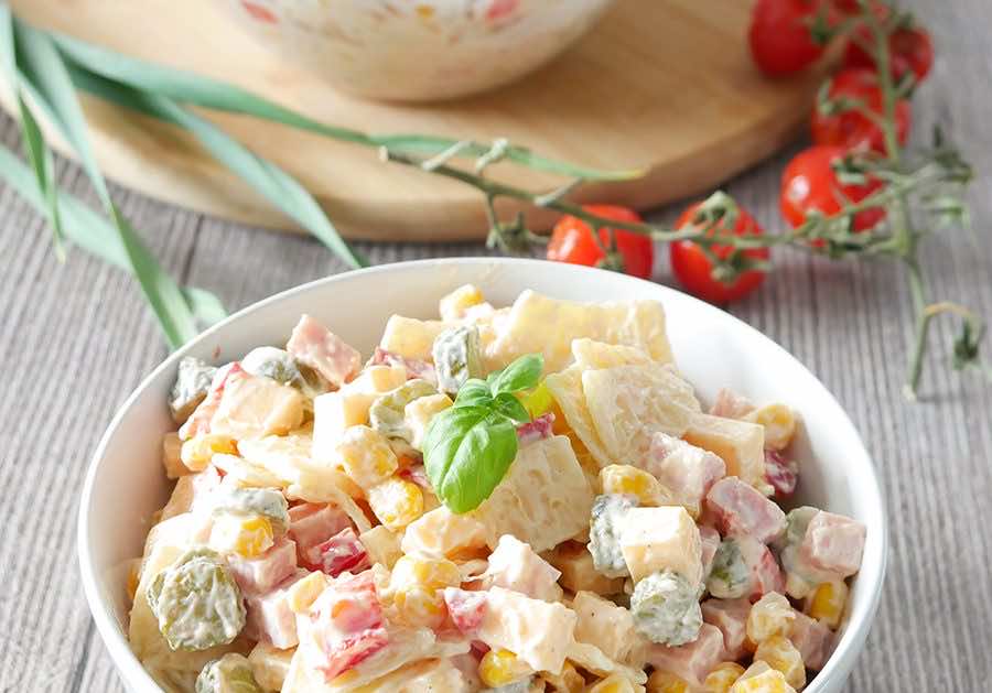 Niebanalna sałatka do której przygotowania wykorzystano makaron łazanki. Bardzo smaczna, pożywna i kolorowa.