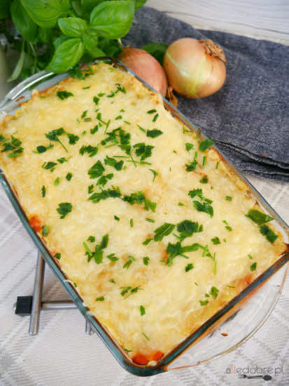 Pomysł na szybki i smaczny obiad zapiekanka ziemniaczana z mięsem mielonym.
