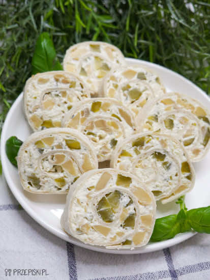 Roladki z tortilli z serkiem śmietankowym. Idealna i szybka przekąska na imprezę bądź drugie śniadanie do szkoły czy pracy.