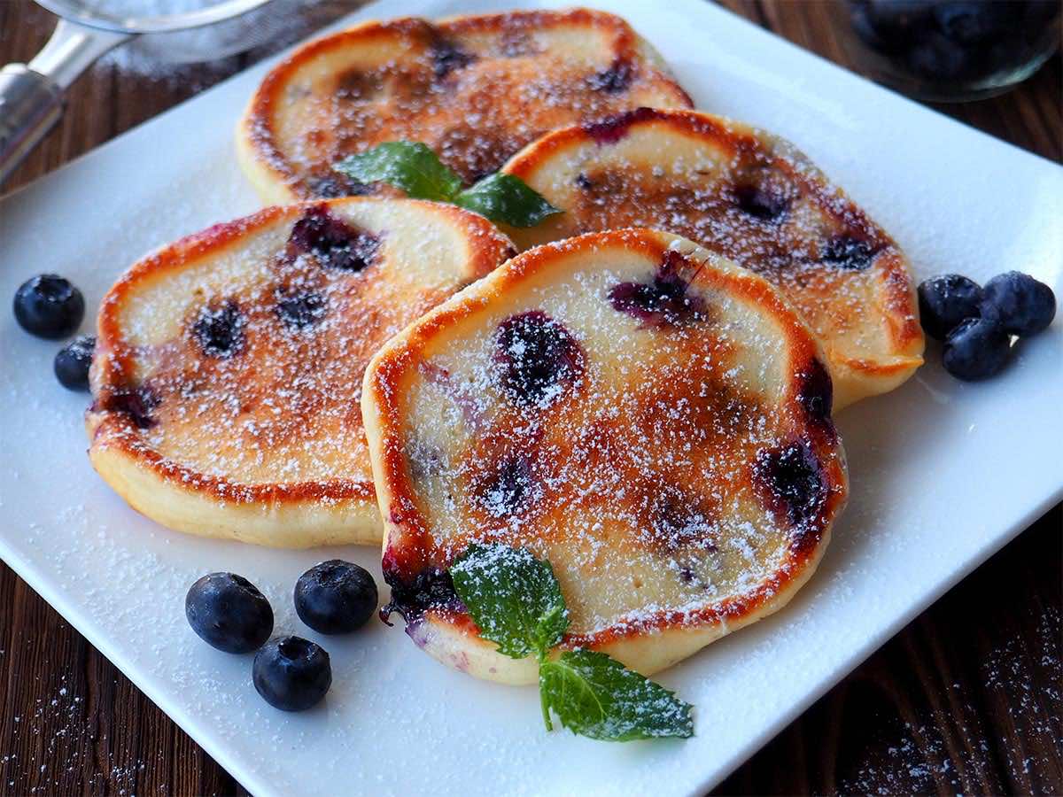 Puszyste racuchy drożdżowe z borówkami, przygotowane na pianie z białek według przepisu mojej babci!