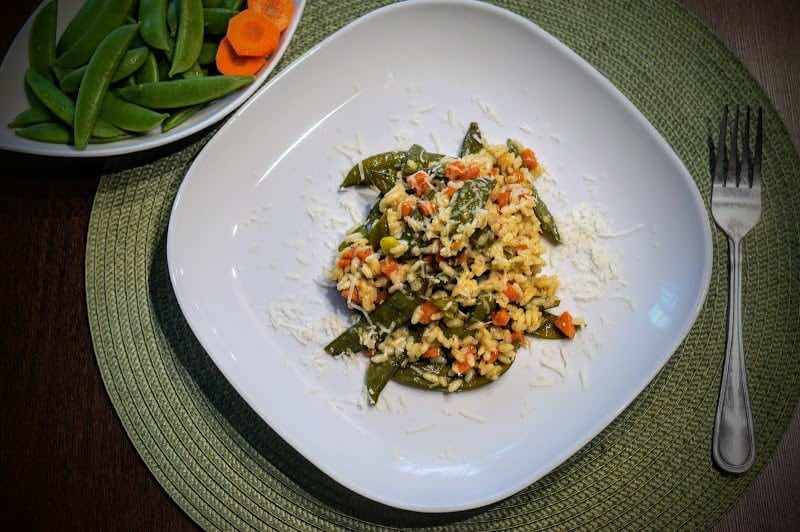 Risotto z groszkiem cukrowym i marchewką :) Pomysł na smaczny obiad.
