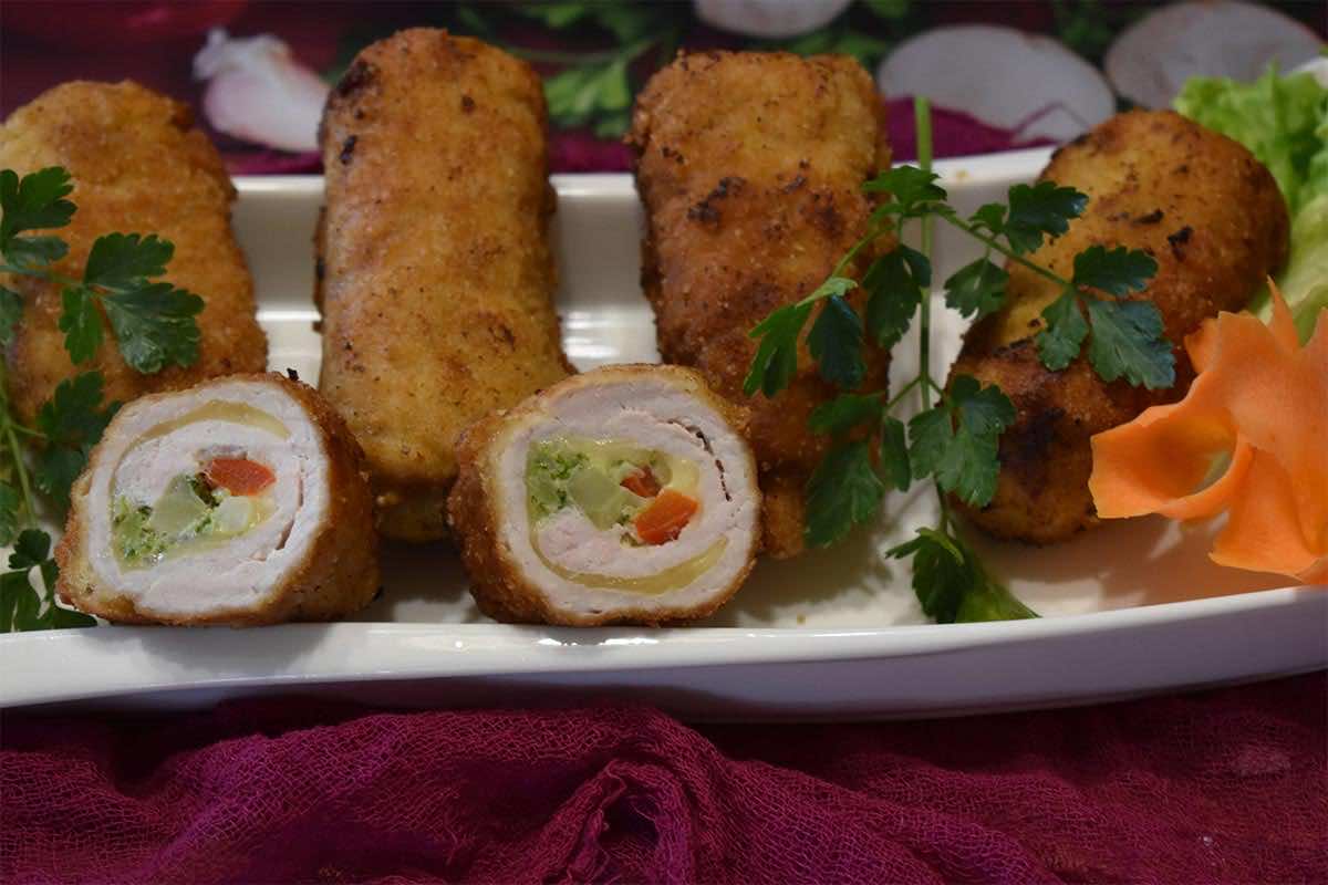 Pyszne roladki z warzywami, które mogę znaleźć się na każdym stole podczas uroczystości są smaczne i soczyste.