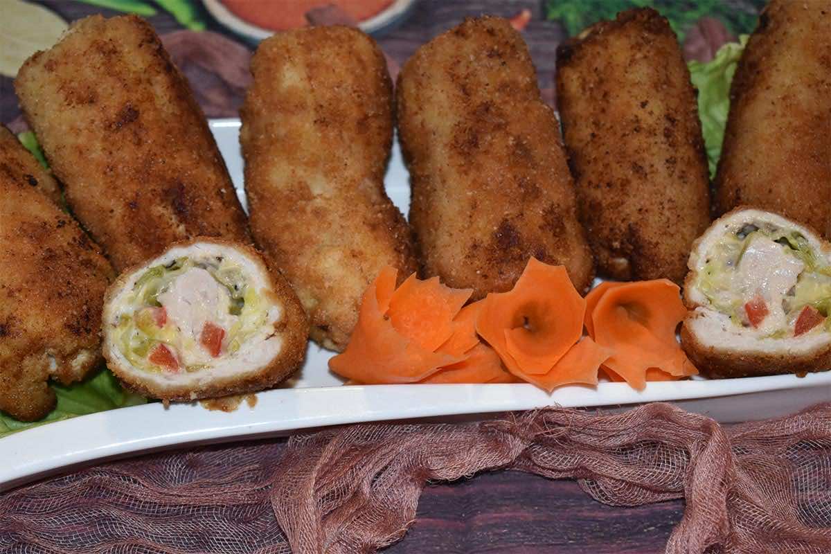 6. Zawijamy brzegi mięsa a później zawijamy roladki, panierujemy w roztrzepanym widelcem jajku a następnie w bułce tartej