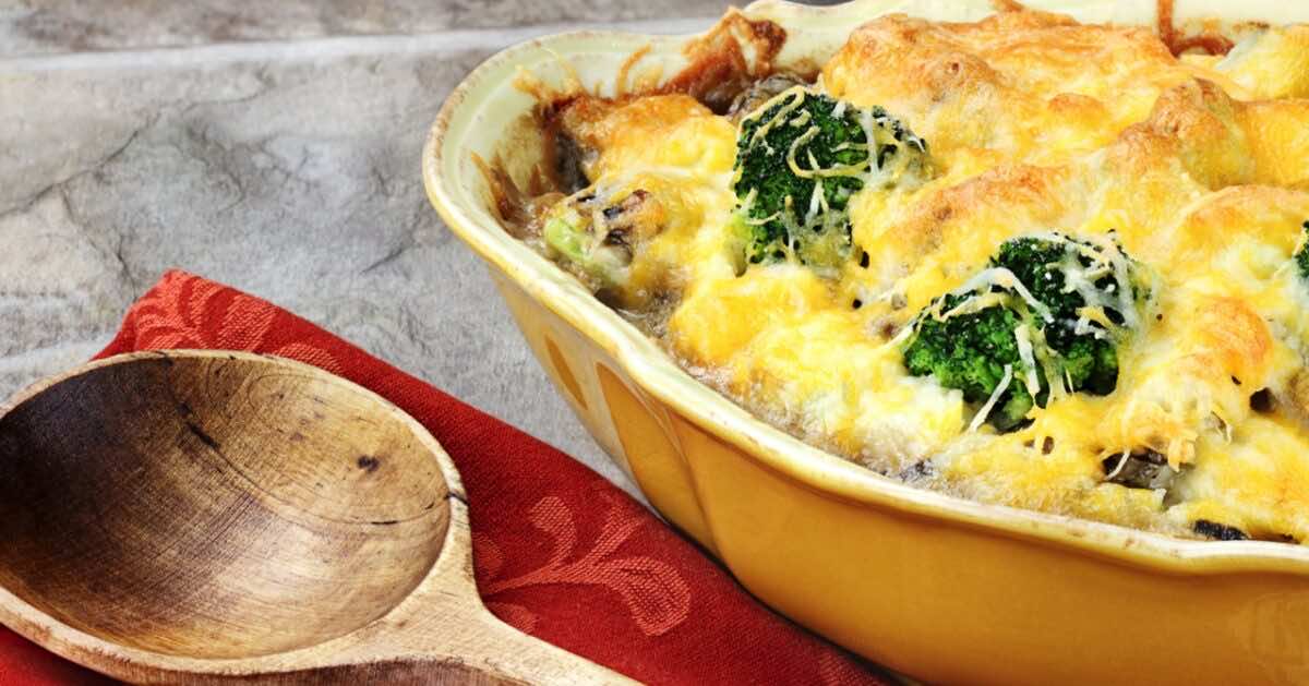 Ryżowa zapiekanka z kurczakiem i brokułami