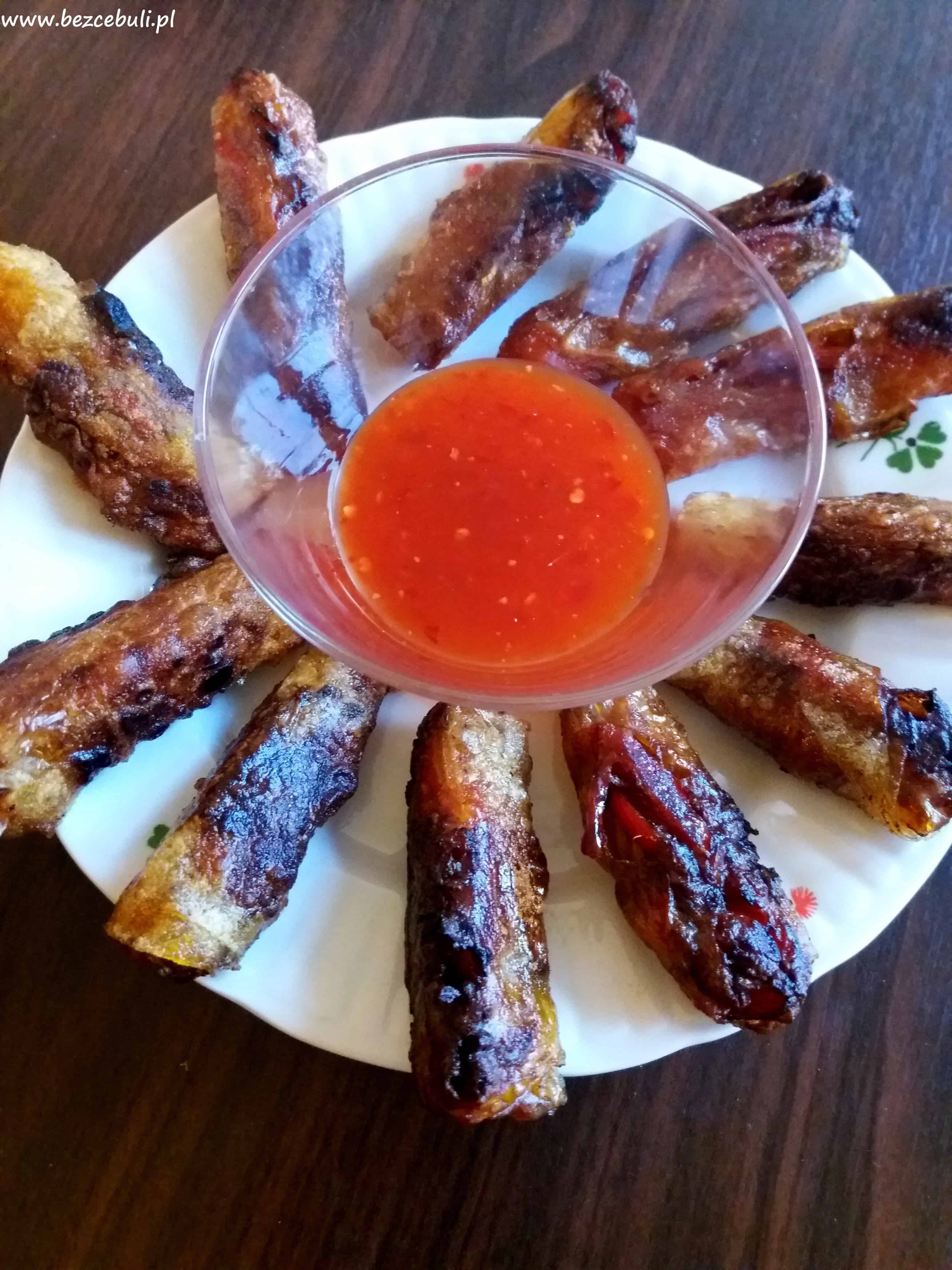 Sajgonki podałam z gotowym słodkim sosem chili.