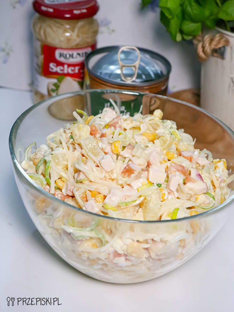 Sałatka dokładka to bardzo smaczna sałatka z dodatkiem selera konserwowego i pora. Tą bardzo smaczną i prostą sałatkę można przygotować w ekspresowym tempie.