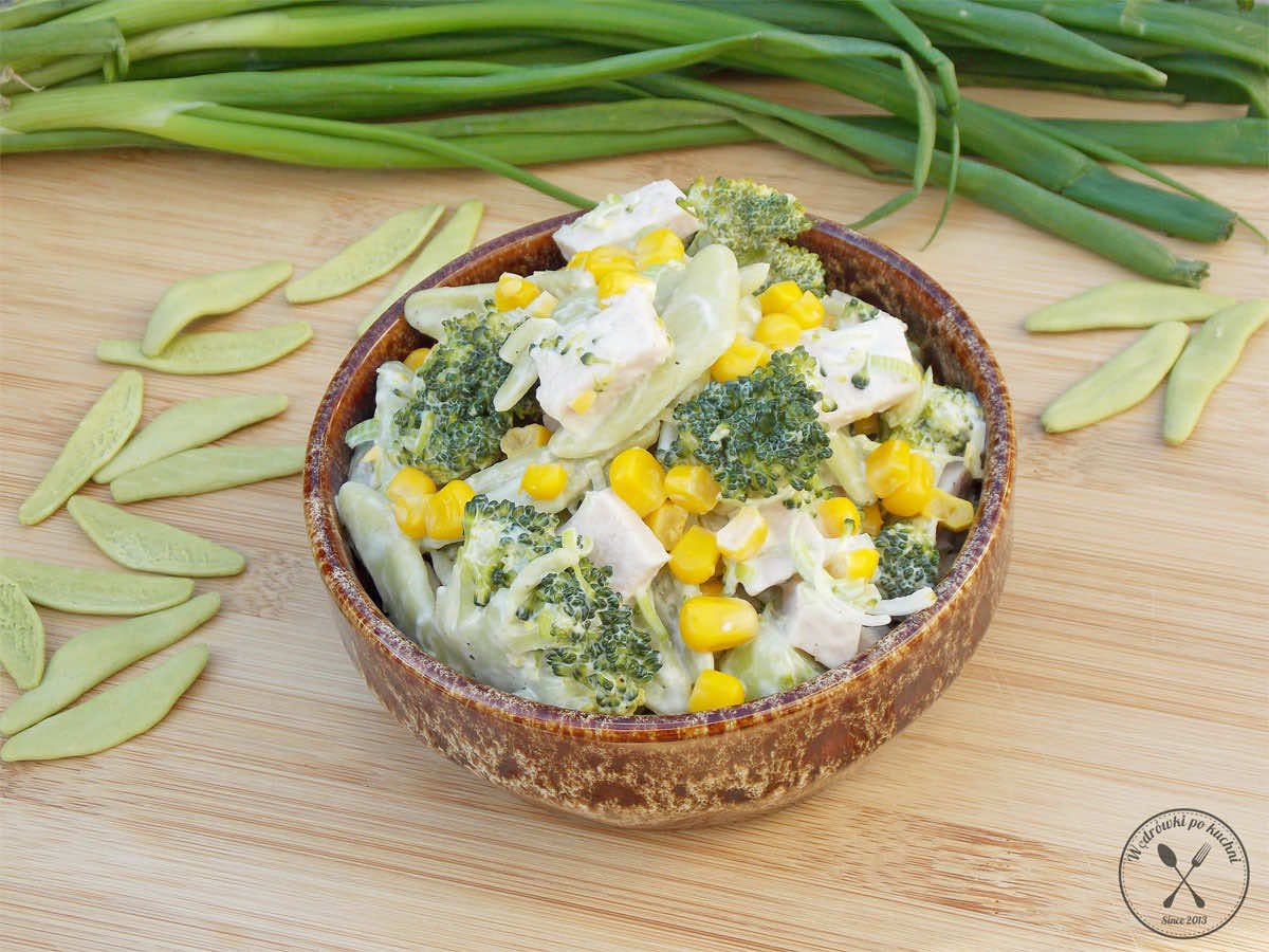 Choć pochodzenie makaronu nie jest do końca znane, jedno jest pewne – mąka zmieszana z wodą cieszy nasze podniebienia już od około czterech tysięcy lat. I wcale jej korzenie nie znajdują się w Italii. Najstarszy, liczący sobie 4 tysiące lat, makaron znaleziono w Chinach w dolinie Żółtej Rzeki. W Polsce makarony są bardzo popularne i lubiane. Są głównym składnikiem zup, dań głównych i sałatek. Ja podczas zakupów nie mogę przejść obojętnie obok półki z makaronami. Przeróżne kształty, smaki jak i kolory przyciągają moją uwagę i inspirują mnie. Ostatnio urzekł mnie makaron o zielonym kolorze ze szpinakiem, który świetnie sprawdził się w sałatce.
