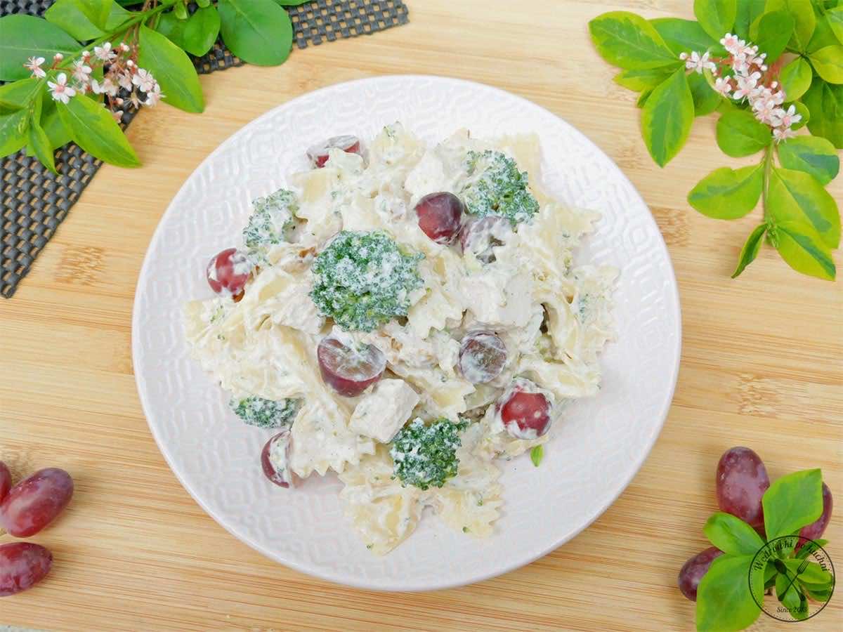 Lubicie proste i sycące sałatki? Ja wprost uwielbiam! Są naprawdę wyjątkowe, bo można przygotować je na wiele sposobów, z różnymi dodatkami i nigdy się nie nudzą. Jeśli więc przyjdzie Wam ochota na szybką, smaczną i całkiem fit sałatkę, polecam Wam właśnie ten przepis. Sałatka jest kompozycją kilku prostych i ogólnodostępnych składników. W towarzystwie pożywnego makaronu znajdziecie delikatnego kurczaka, świeżego brokuła oraz soczyste winogrona. Całość uzupełnia lekki, przyjemny sos na bazie kremowego jogurtu greckiego. Niewyszukana, prosta sałatka, od której ciężko się oderwać.