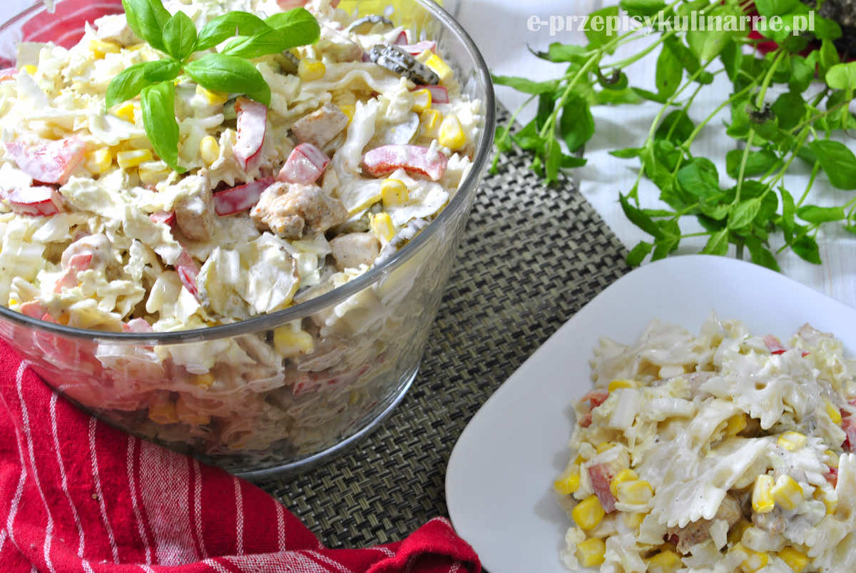 Sałatka makaronowa z kurczakiem i kapustą pekińską jest bardzo pożywna i jednocześnie dość lekka. Świetnie nadaje się na wszelkiego rodzaju imprezy albo lunch do pracy.