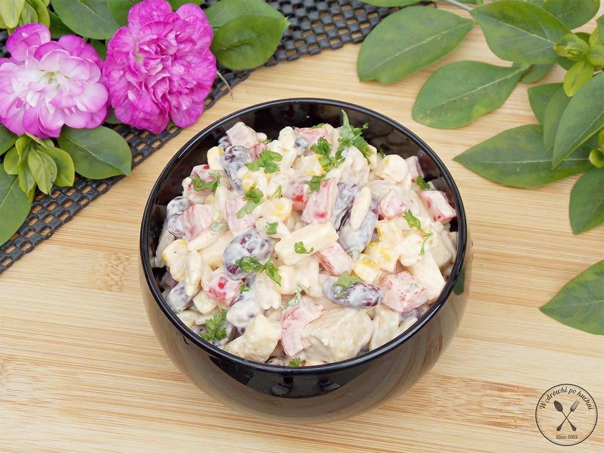 Uwielbiam sałatki i nie wyobrażam sobie bez nich życia. Szczególnie te lekkie, kolorowe i pełne witamin. Jednak czasem dla odmiany lubię zjeść pożywną sałatkę z dobrym majonezem. Zdrowo z pewnością nie jest, ale pysznie na pewno!