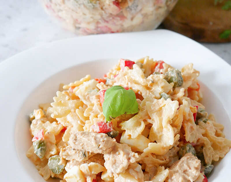 Sałatka na parapetówkę to kolejna smaczna przekąska, którą chciałbym Wam polecić. W jej skład wchodzi kilka prostych składników, a sama sałatka jest bardzo szybka do zrobienia. Dzięki zawartości kurczaka i makaronu jest bardzo sycąca, a pozostałe składniki nadają jej cudownego smaku.