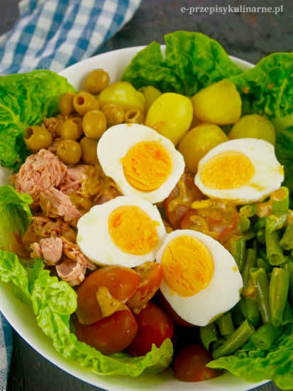 Sałatka nicejska z tuńczykiem, oliwkami i pomidorami to klasyka kuchni francuskiej i jak każda znana potrawa, doczekała się wielu wersji. Podany poniżej przepis jest jednym z tych bardziej tradycyjnych. Sałatka jest bardzo smaczna, lekka i kolorowa.