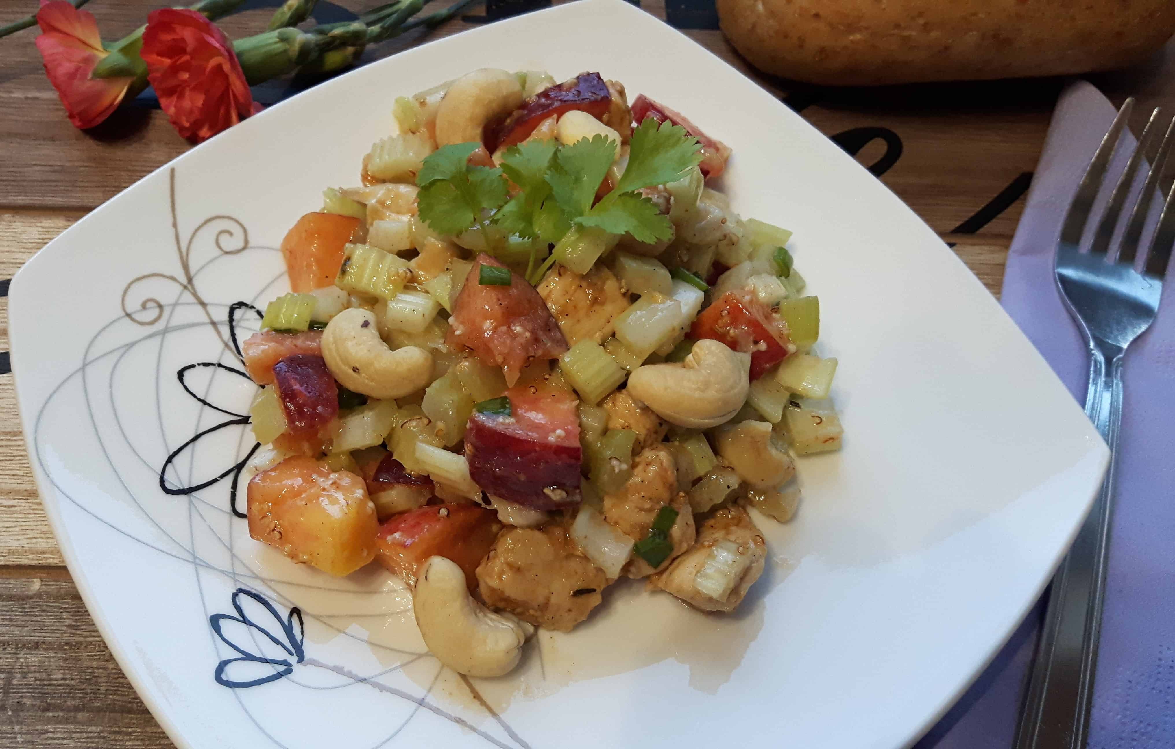 SAŁATKA Z SELEREM NACIOWYM, KURCZAKIEM I BRZOSKWINIAMI