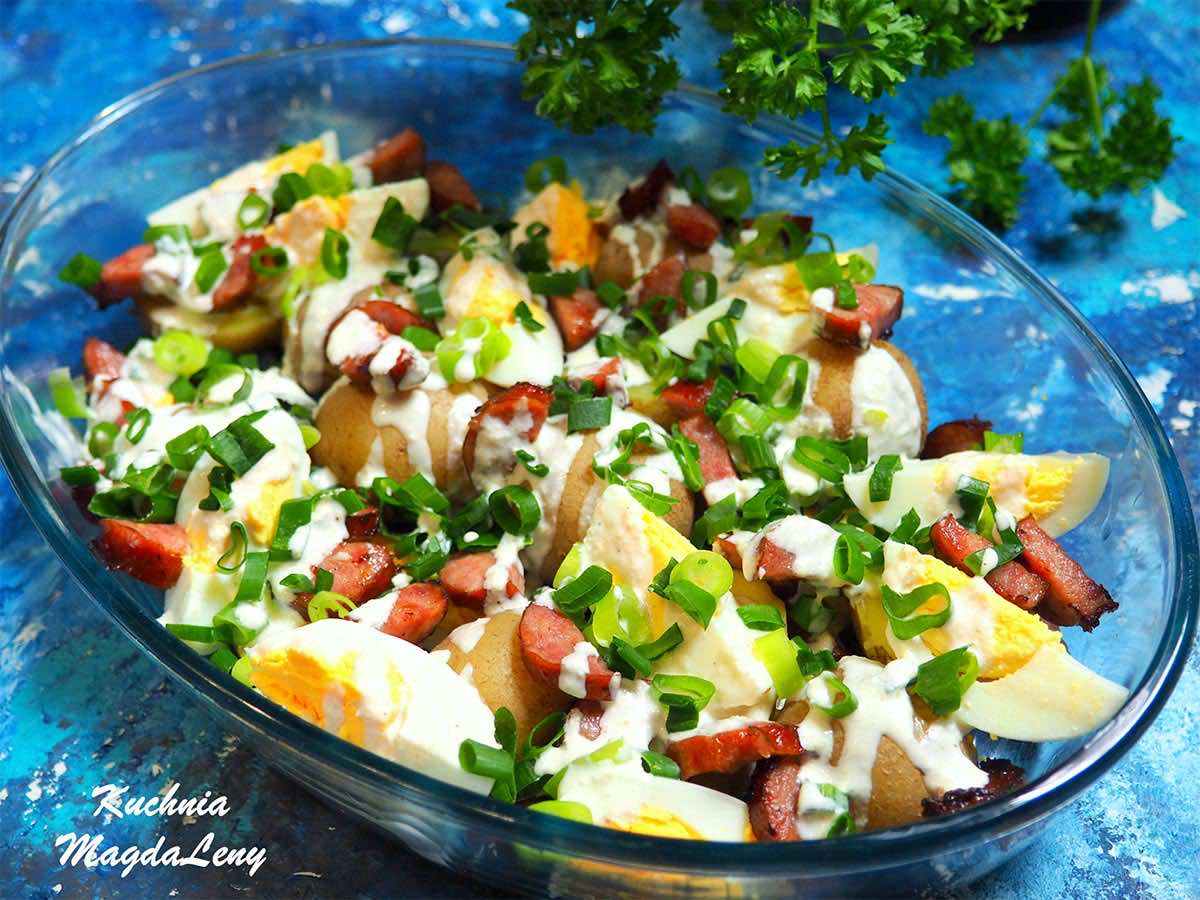 Prosta sałatka z 4 składników + sos chrzanowy. Sprawdzi się na wiele okazji. Jako lunch do pracy czy przekąska dla gości.