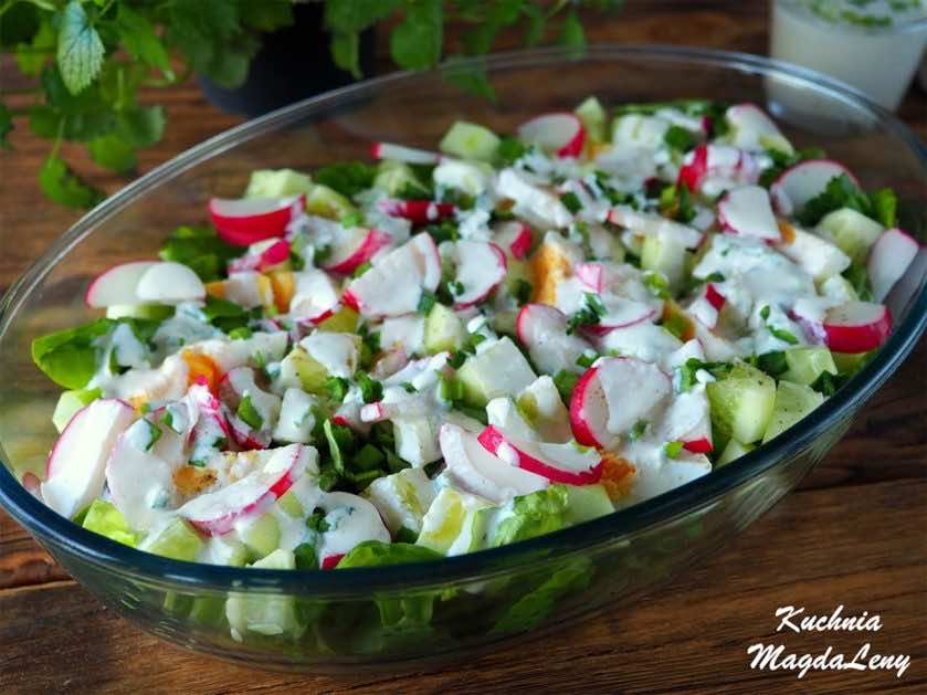 Sałatka z nowalijek z dodatkiem jajek i sosem chrzanowym :)