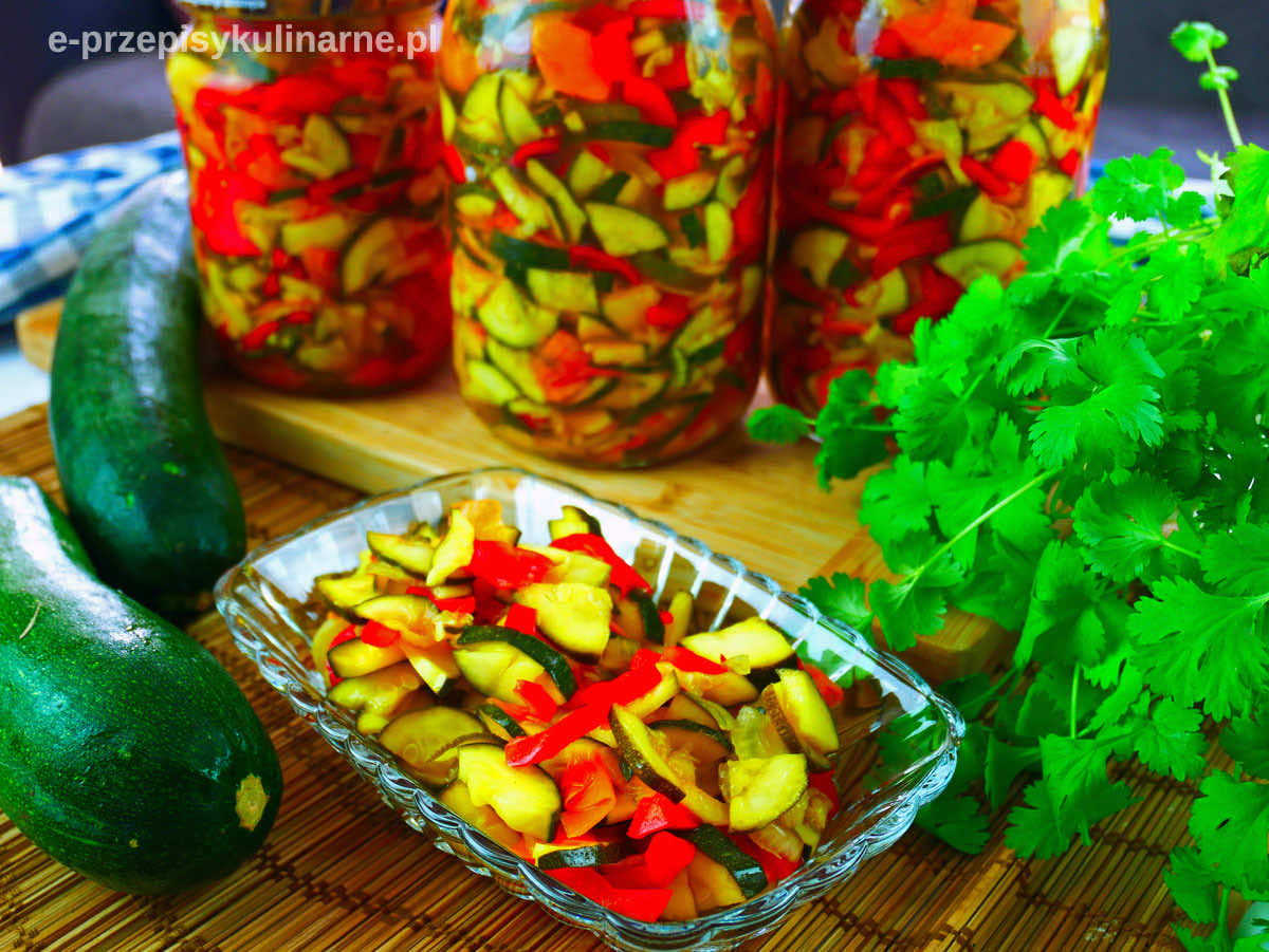 Sałatka z cukinii do słoików na zimę jest pyszna, kolorowa i świetnie sprawdza się jako dodatek do obiadu albo sałatka do grilla. Warzywa w słodko-kwaśnej zalewie z orientalną nutą za sprawą curry smakują wybornie. Taka sałatka jest łagodna w smaku, nieco słodka, z lekkim, ale wyczuwalnym posmakiem curry.