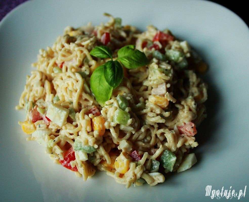 Błyskawiczna sałatka z makaronu z zupek chińskich, która doskonale nadaje się na imprezę, grilla, itp. Bardzo smaczna a dodatki można zmieniać indywidualnie. Polecam.