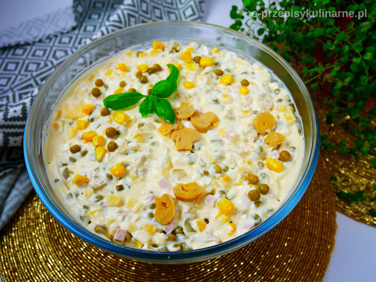 Sałatka z szynką konserwową i pieczarkami jest pyszna, prosta do zrobienia i szybko znika ze stołu. Z podanych składników wychodzi naprawdę spora salaterka, dlatego sałatka będzie idealna na imprezę ze dużą ilością gości.