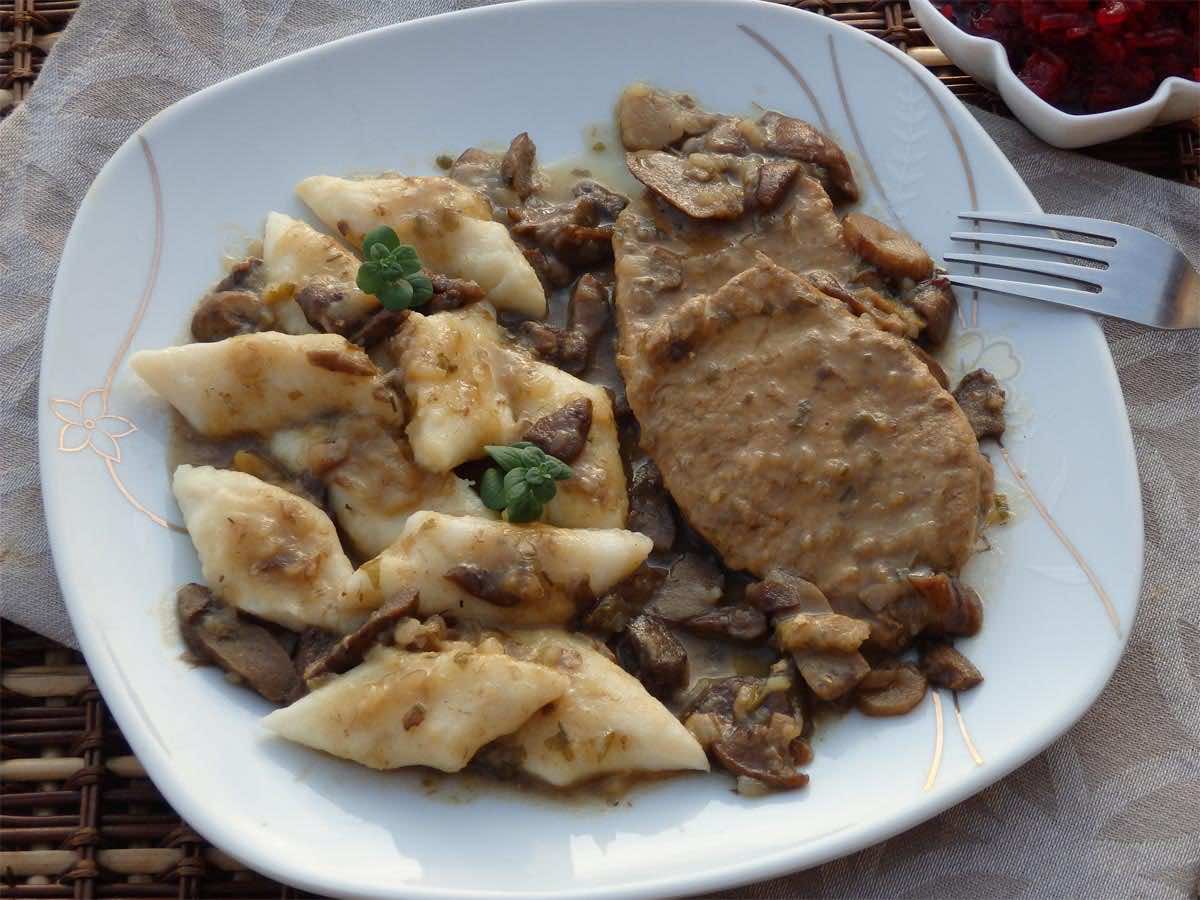 W zamrażarce mam jeszcze zapasik grzybów więc wykorzystałam je do przygotowania tego pysznego obiadu. Z grzybami, w pysznym sosie udusiłam plastry schabu. Zamiast schabu pyszna będzie także karkówka lub żeberka. Zamrożone miałam podgrzybki, maślaki i koźlaki ale można wykorzystać także kurki. W sezonie oczywiście można grzyby mrożone zastąpić świeżymi a jak ktoś nie lubi grzybów leśnych może wykorzystać pieczarki.