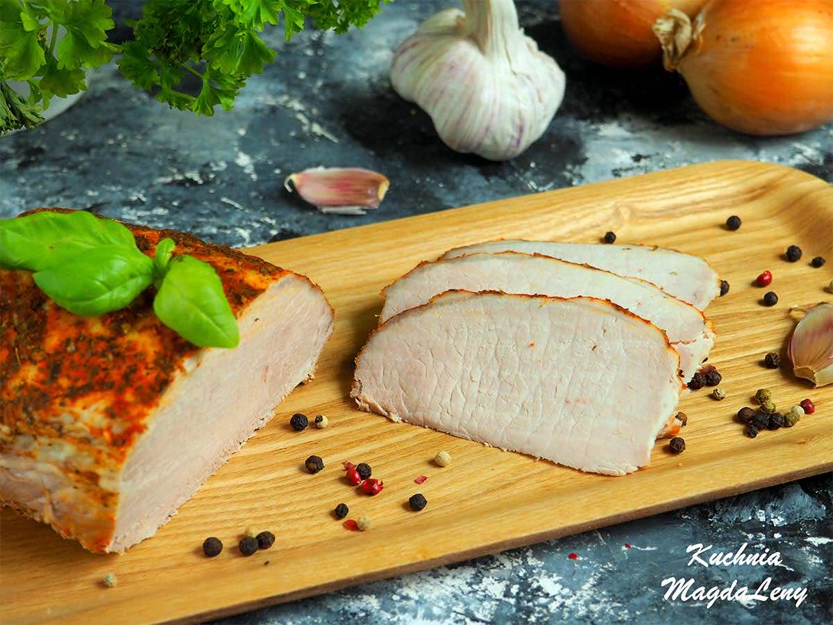 Schab pieczony w maślance z dodatkiem cebuli oraz czosnku.