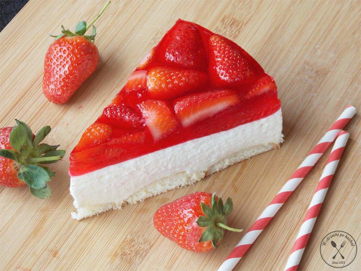 Sernik na zimno z truskawkami to mój ukochany, letni deser. Chłodzi, orzeźwia i zawiera jedne z tych owoców, na które sezon jest zdecydowanie za krótki. Niewątpliwie zaletą tego deseru jest brak pieczenia jak i to, że robi się go błyskawicznie. Ciasto o delikatnym, kremowym smaku wanilii, który idealnie komponuje się z soczystymi truskawkami i galaretką. Dodatek serka mascarpone sprawił, że sernik jest bardzo aksamitny i kremowy.