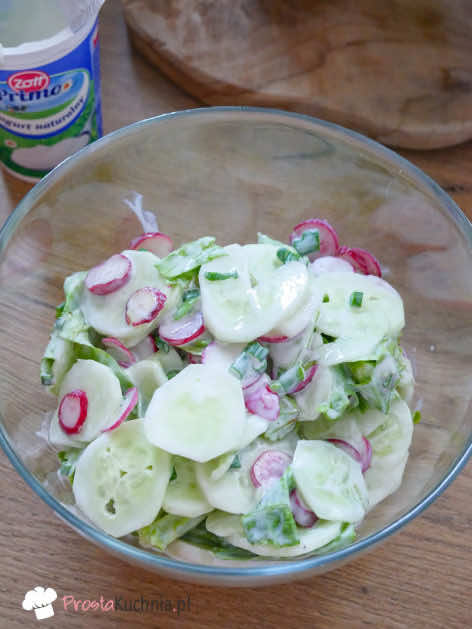 Sezonowa sałatka do obiadu, pełna świeżych warzyw, to uzupełnienie każdego dania. Składa się z kilku prostych warzyw sezonowych, które z pewnością wiele z Was ma na swoich działkach.