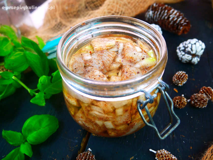 Śledzie korzenne w oleju z przyprawami jakie dodaje się do piernika to tradycyjny przepis na pyszną przekąskę nie tylko na święta Bożego Narodzenia.