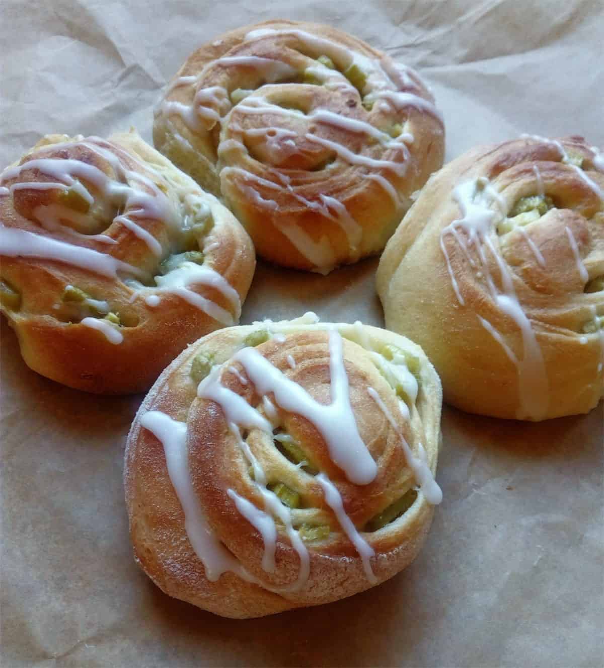 - Cukier puder mieszamy z odrobiną gorącej wody i mieszamy, aż powstanie gęsty lukier. Upieczone drożdżówki smarujemy lukrem.