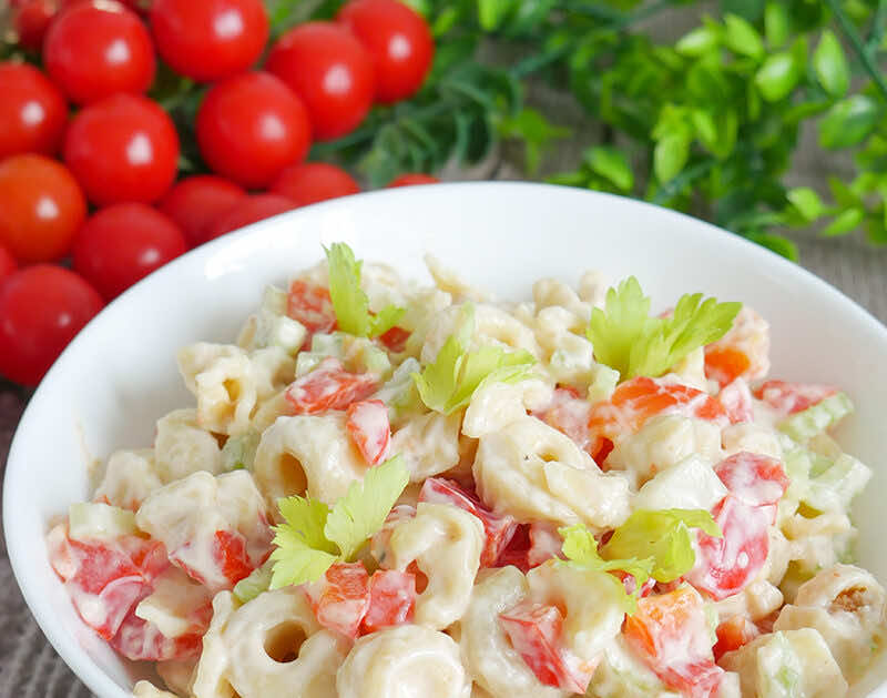 Smaczna sałatka na szybko – taka przekąska zagościła ostatnimi czasy w naszym domu. Składa się z 3 podstawowych składników, a są nimi, tortellini, papryka oraz seler oraz z sosu na bazie majonezu i jogurtu naturalnego.
